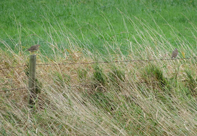Western Meadowlarks! There appeared to be 10 or 12 of them. Meadowlarks are seen at the estuary periodically and are probably out there more than we realize, this is the first time we've seen them in this area although it is typical habitat for them.